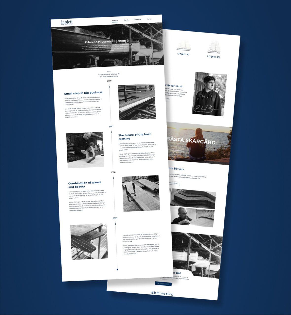Med en stabil grund i Wordpress, byggde vi på skräddarsydda och lätthanterliga block där kunden själv kan ändra och justera i sin sida som pryds av en vacker och stilren layout som är stilig precis som båtarna är!